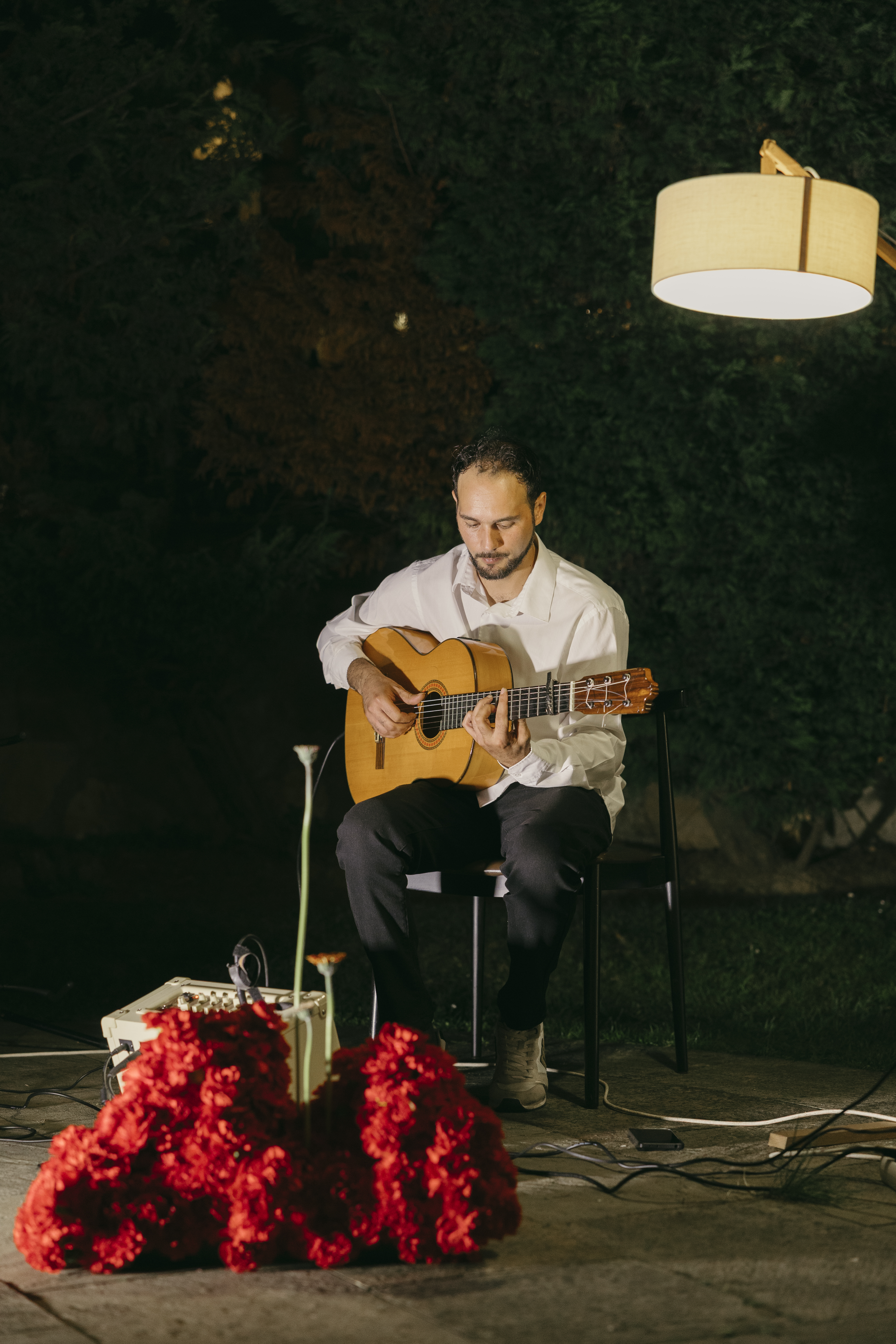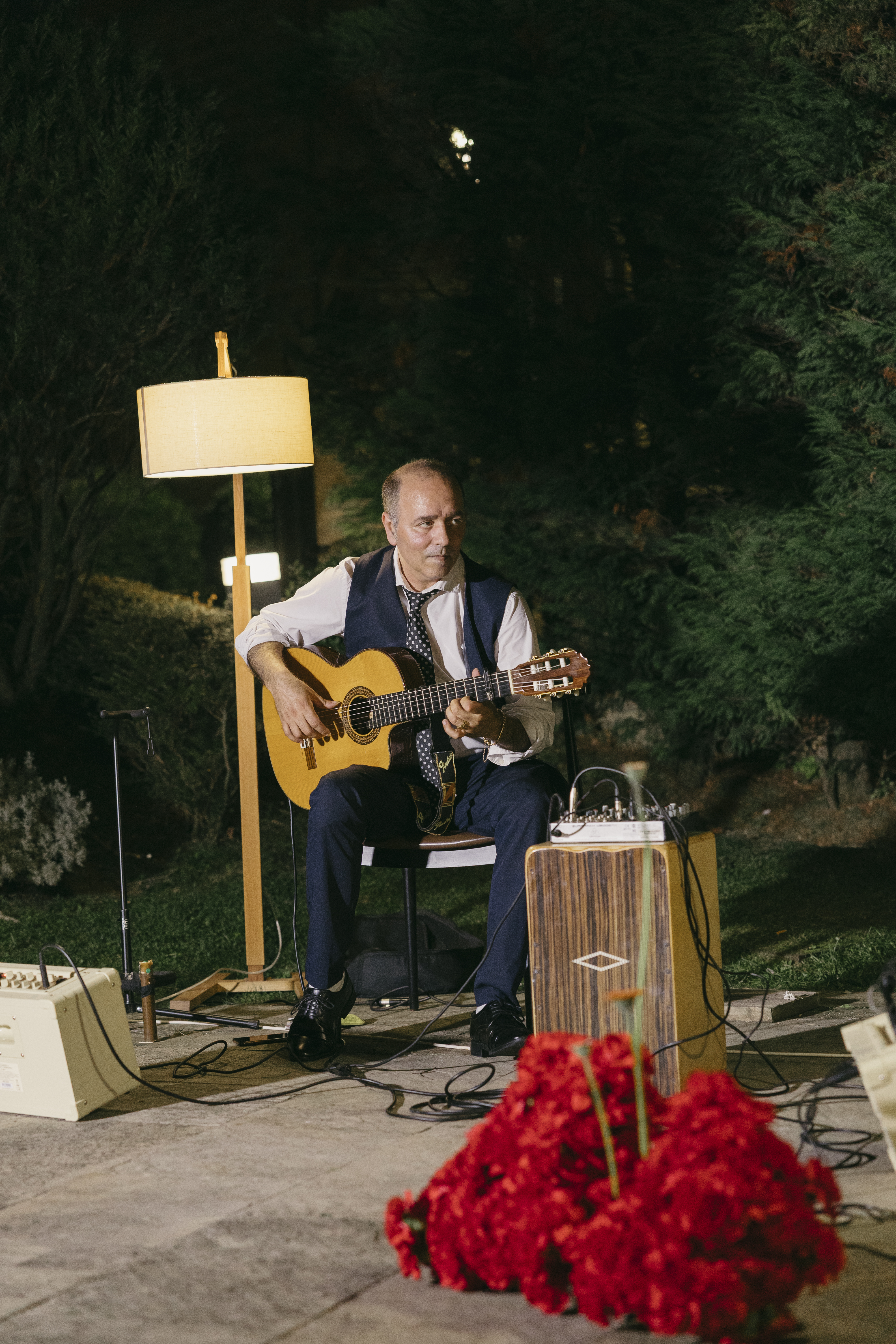 One of the most personal details of the reception was the use of tambourines as placement cards. The couple got engaged in Siena, and the tambourine is a traditional instrument used both in Italy and in the Basque Country. Incorporating them into the table design became a symbolic way to connect both places and honor the couple’s story and cultural roots.