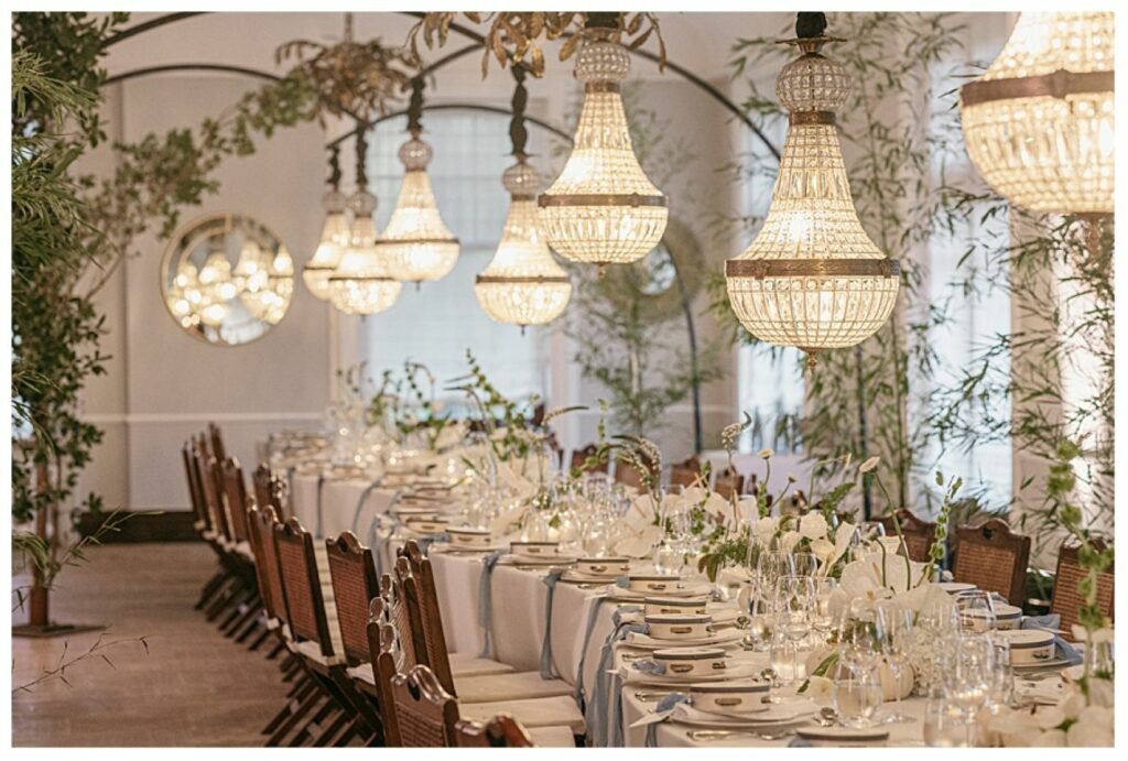 For the reception, the couple opted for a single curved “snake-style” table, one of the most sought-after wedding trends for 2026. Flowing organically through the room, the table encouraged conversation, movement and connection among guests.