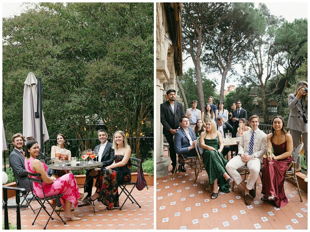 Before the dinner guests enjoyed drinks and local food “pintxos” at the beautiful terrace and gardens the palace has. To welcome guests a big fabric was hanged from one of the tallest windows of the palace. This sign had written couple names and the date of their wedding.