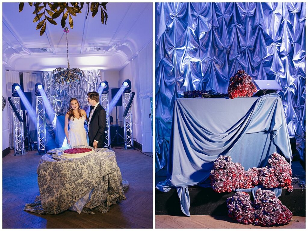 After dinner, the celebration continued in a separate party lounge, designed to feel modern and immersive. The space was transformed with soft draping, adding movement and texture while creating a more contemporary atmosphere within the palace.