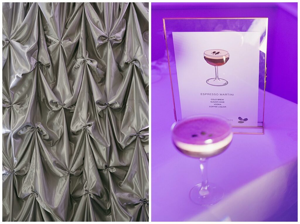 A Modern Wedding Party with Draped Interiors and Signature Cocktails